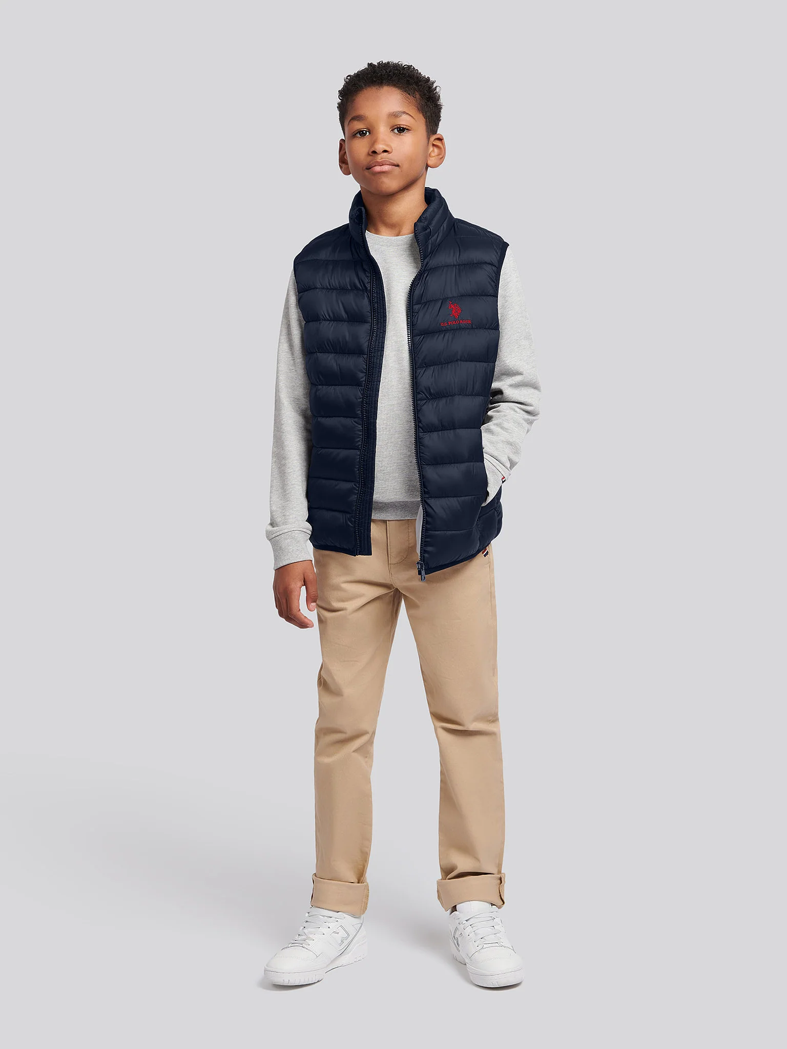 Bring warmth and protection to stylish, considered looks with the U.S. Polo Assn. Bound Quilted Gilet. Maintaining form and fit, the dependable layer is treated with a durable water resistant coating for protection from the rain and features practical zip pockets providing refuge for cold hands. Elasticated binding at the armholes and hem ensure a secure fit and the signature double Horsemen logo is embroidered on the chest to finish. Layer over polo shirts, and chinos for a versatile and social lifestyle.