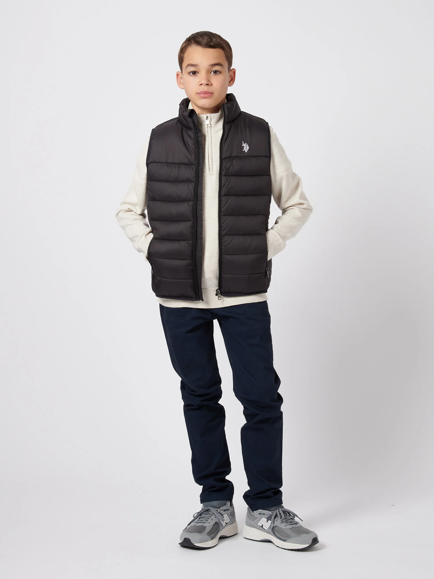 Equip your young explorer with the U.S. Polo Assn. Boys Panelled Quilted Gilet, a perfect blend of classic style and modern functionality. Pair this versatile gilet with a long-sleeve tee and jeans for a casual yet polished outfit, perfect for school or weekend playdates.