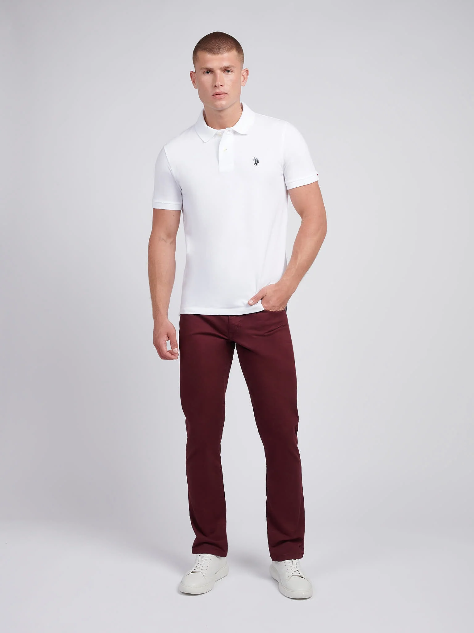 Designed for life on the move, the U.S. Polo Assn. Mens Core 5 Pocket Trouser blends classic tailoring with everyday practicality. A refined take on a wardrobe staple, these comfort stretch denim trousers offer a clean, structured look ideal for off-duty days or weekend escapes. Pair with a crisp Oxford shirt and leather trainers for an easy, elevated finish.