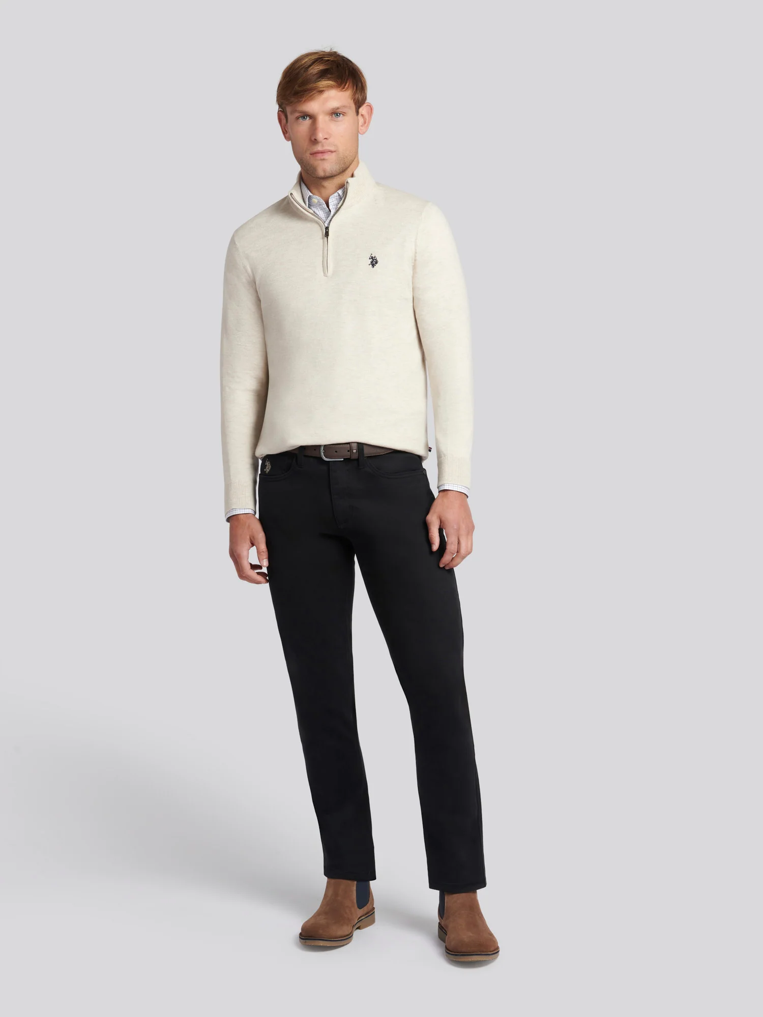 A refined layer with timeless appeal, the U.S. Polo Assn. mens Cotton Funnel Neck 1/4 Zip Knit offers an ideal balance of comfort and style making it perfect for pairing with chinos or denim for a polished yet relaxed look.