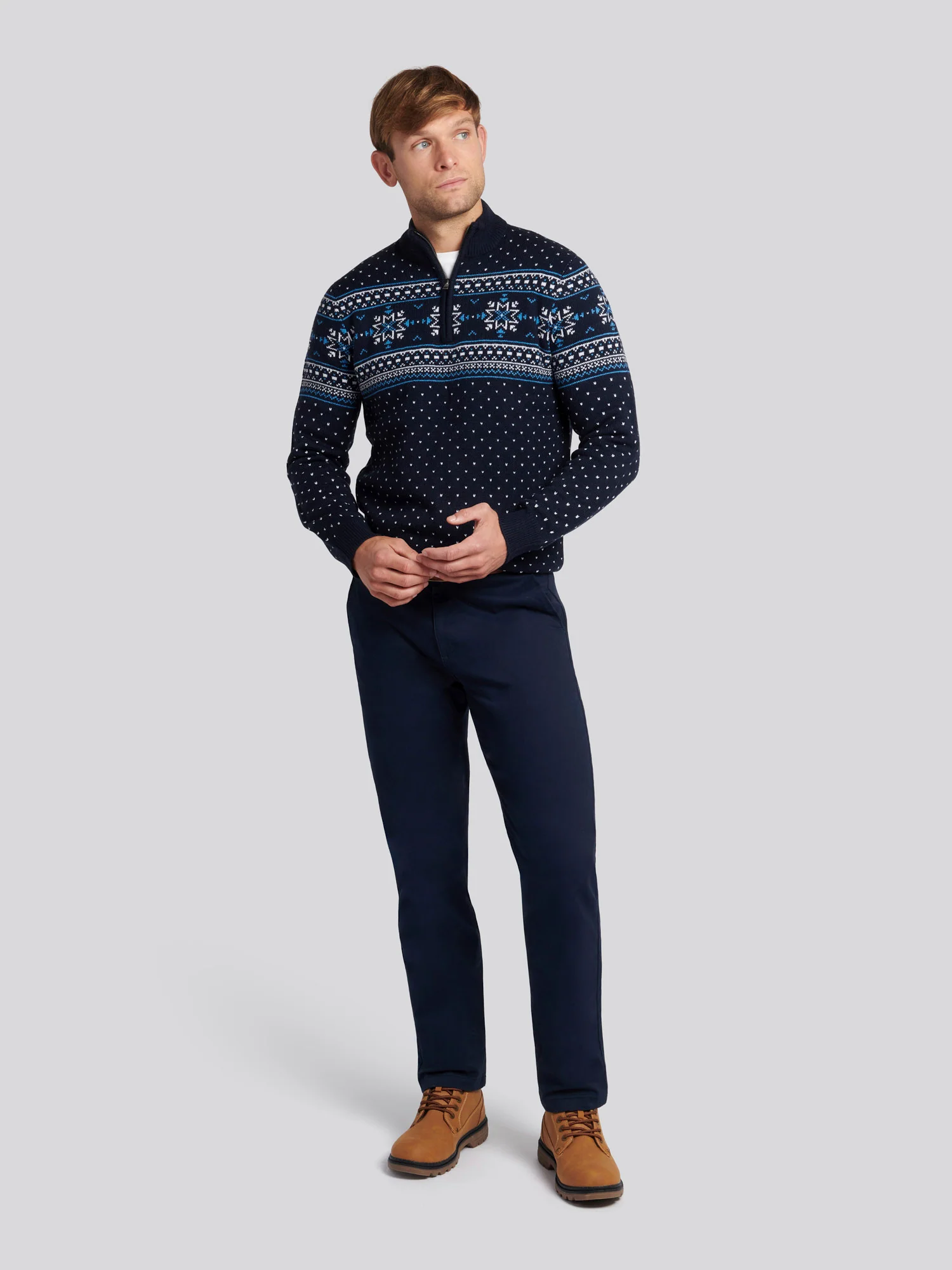 Mens Quarter Zip Fair Isle Sweatshirt in Navy Blue