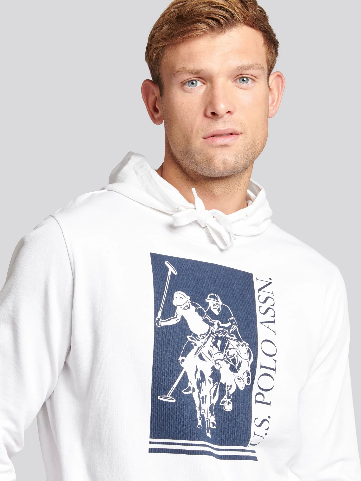 The U.S. Polo Assn. Mens Rider Hoodie is crafted in a soft cotton blend with a simple pullover design making it the champion of style and comfort perfect to wear all year round. The lightweight layer delivers warmth with ribbed cuffs, a hood and drawcords, for a comfortable fit. Finished with a bold double Horsemen sports graphic printed on the chest, for the USPA stamp of authenticity.